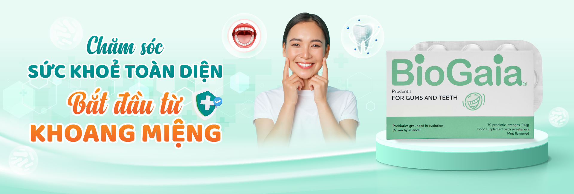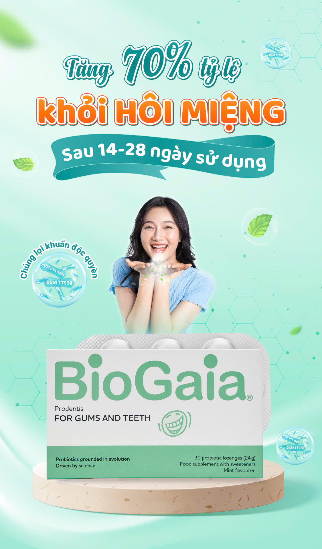“Viên ngậm men vi sinh nha khoa BioGaia Prodentis được nhập khẩu chính hàng từ thụy điển, là dòng sản phẩm được BioGaia – Thương hiệu men vi sinh hàng đầu thế giới, đặc biệt nghiên cứu dành riêng cho các vấn đề răng miệng. Với 65 kiểm chứng lâm sàng, BioGaia Prodentis được các chuyên gia hàng đầu ngành nha khoa đánh giá rất cao trong ứng dụng điều trị các vấn đề răng miệng”
