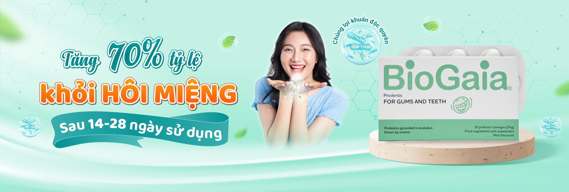 Tỷ lệ khỏi hôi miệng tăng hơn 70% sau khi sử dụng BioGaia Prodentis